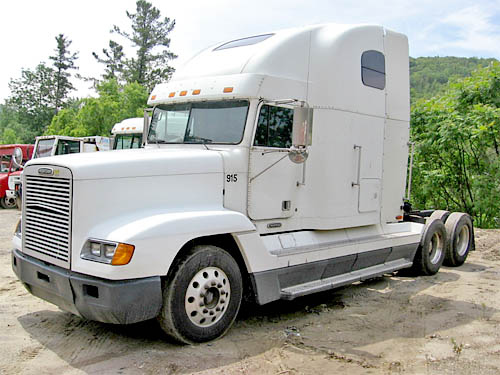 2001 Freightliner Truck Tractor, Mod. D120064ST, Meritor 10 Sp. Man. Trans., Cummins N14 Plus 400 H.P. Diesel Engine, Air Suspension, Engine Brake, Sliding 5TH Wheel, Tandem Axle, Raised Roof Sleeper, 232 Wheel Base, 40,000# Rears 2001 Freightliner Truck Tractor, Mod. D120064ST, Meritor 10 Sp. Man. Trans., Cummins N14 Plus 400 H.P. Diesel Engine, Air Suspension, Engine Brake, Sliding 5TH Wheel, Tandem Axle, Flat Roof Sleeper, 220 Wheel Base, 40,000# Rears |