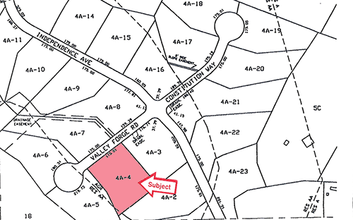 Lot 4A-4, 0 Valley Forge Road ±175 Ft. Frontage Site has City Water & Sewer on Street Located on Dead End Street Town of Hanson Assessors Book: 38371, Pg. 43