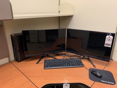 583 | |  | H.P. CORE i5 PC W/ (2) 24" FLAT MONITORS, KEYBOARD & MOUSE |
