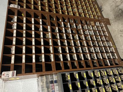 359 | 2 |  | ASS'T IMPERIAL PIGEONHOLE MET. NUT & BOLT BINS W/ CONTENTS & STAND |