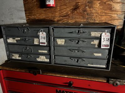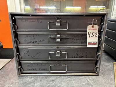 452 | 2 |  | ASS'T DURHAM MFG. 4D MET. SLIDE OUT PARTS STORAGE CAB.'S W/ LUG NUTS, CLEVIS PINS & KNOBS |