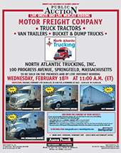 TERMS OF SALE: 25% DEPOSIT BY CASH, CERTIFIED OR BANK CHECK, OR BANK WIRE TRANSFER. 15% BUYERS PREMIUM APPLIES ON ALL ONSITE PURCHASES. 18% BUYERS PREMIUM APPLIES ON ALL ONLINE PURCHASES. PERSONAL OR COMPANY CHECK ACCEPTED ONLY IF ACCOMPANIED WITH A BANK LETTER GUARANTEEING PAYMENT. EXAMPLE OF BANK LETTER OF GUARANTEE: THIS BANK GUARANTEES PAYMENT TO AARON POSNIK & CO., INC. ON ACCOUNT # _____UP TO THE AMOUNT OF $ _____ FOR PURCHASES MADE AT THE NORTH ATLANTIC TRUCKING, INC. AUCTION TO BE HELD ON WEDNESDAY, FEBRUARY 18TH. NO PURCHASE REMOVED UNTIL COMPLETE SETTLEMENT IS MADE. OTHER TERMS TO BE ANNOUNCED AT TIME OF SALE.