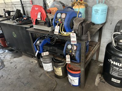 404 | LOT |  | ASS'T DETERGENT, CLEANER, FIRST AID KITS & MAINTENANCE EQUIP., W/ MET. SHELVING |