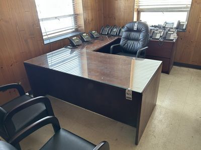 422 | |  | 6'X8'X6' U-SHAPED MAHOG. EXECUTIVE OFFICE WORKSTATION, W/ GLASS TOP |